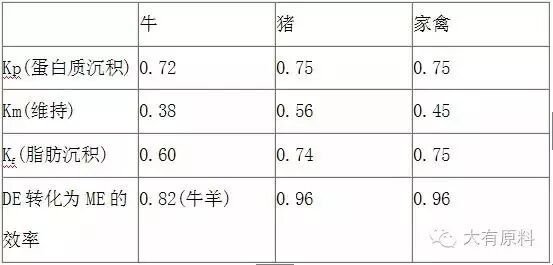 表17-15 牛、猪、家禽ME转化为NE的效率(K)